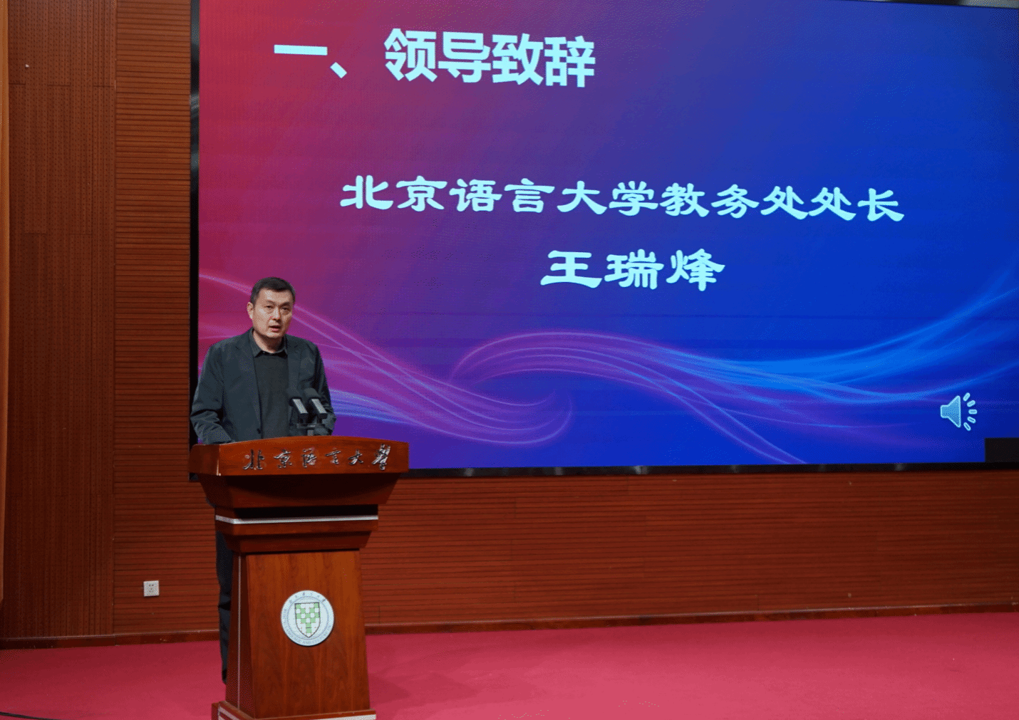 对各位嘉宾的到来表示热烈的欢迎。他提到,作为学校响应国家重大战略需求打造的创新育人平台,北京语言大学“世界汉学与中国学国际人才实验班”于2025年9月正式开班,以培养汉学研究、跨文化交流、全球治理领域复合型人才为核心目标,并于10月启动“理解传统中国、当代中国、海外中国”三维度社会实践,中外学子奔赴江西寻乌、山东及意大利,跨越山海、深耕田野,在实地调研中探寻中国发展脉络,搭建文明互鉴桥梁,积淀了丰富的实践成果与深刻的思想感悟。他寄语实验班的中外学子,以汉学为媒,深耕学术,未来成为卓越的汉学人才。