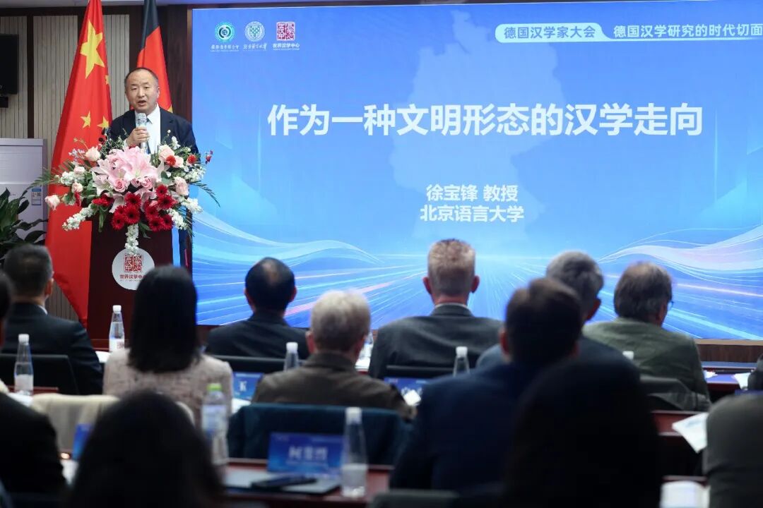 ▲2026年4月2日,北京语言大学世界汉学中心主任徐宝锋在德国汉学家大会现场作主旨发言。